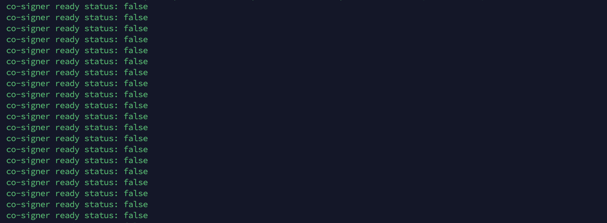 👉 Co-signer 已完成配置并成功启动,但当前尚未完成初始化,下一步需前往APP执行私钥刷新操作,以使服务进入可用状态。